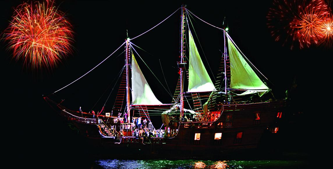 Pirate Ship Night Trip Descripción Descripción Premium $3,400 pesos por persona Tarifa regular $ 3000 pesos p/p Menores $ 1500 pesos Infantes ( 0 a 2 años no pagan) Date & Time Package Type Back Continue